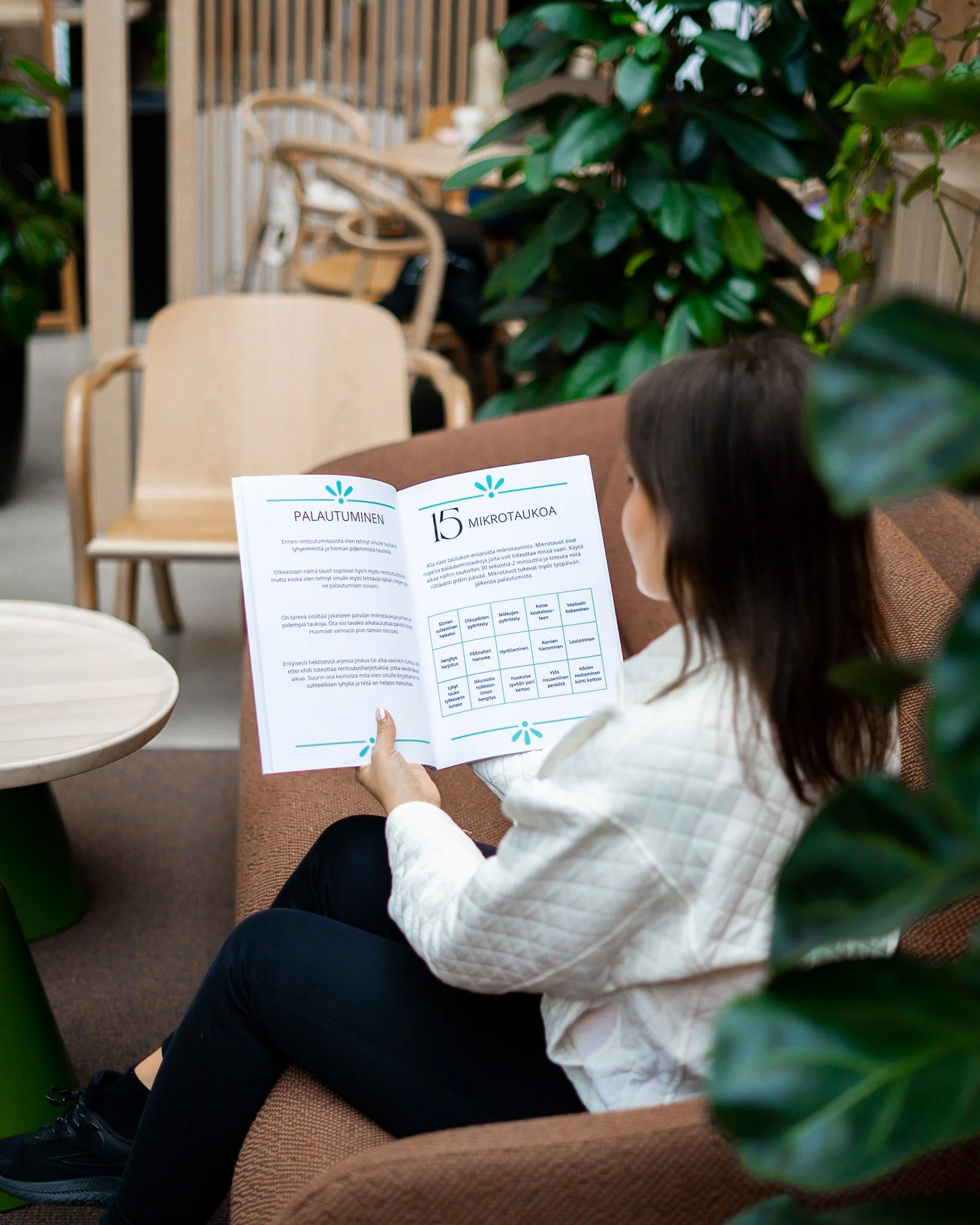 120 erilaista sivua, joista voit valita brändiisi sopivimmat: kansisivut, sisällysluettelot, osiosivut, tehtäväpohjat, ajatuskartat, tarkistuslistat, mockup-kuvat, tarjous- ja kampanjasivut, muistiinpanot ja kiitossivut. Kaikki otsikot ja tekstit suomeksi, helppo vaihtaa omiin.
